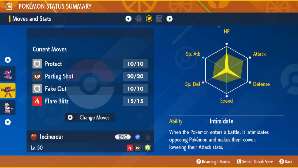 The Incineroar received via the Mystery Gift code will having the following attributes: