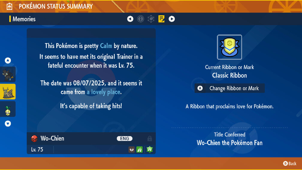 There is no code necessary to redeem this Mystery Gift. Don’t wait though — Shiny Wo-Chien will only be available to redeem until September 30, 2025.