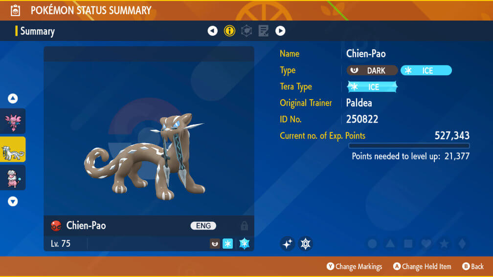 Since players beat Shiny Chien-Pao over 5 million times, they also earned 100 Ice Tera Shards, Water Tera Shards, Flying Tera Shards and Dragon Tera Shards! The gift set can be claimed the same way as Shiny Chien-Pao, without a Mystery Gift code.