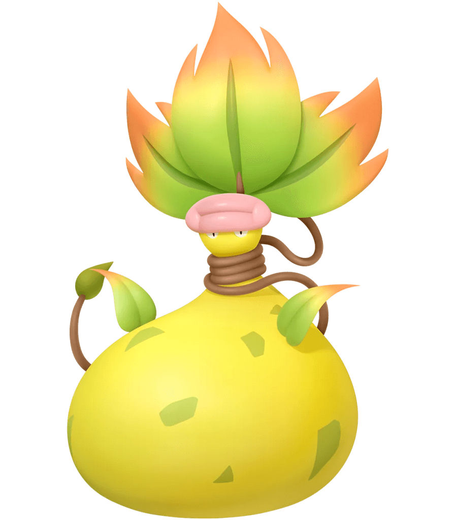 Mega Victreebel retains its Grass/Poison typing. Its body has become swollen with acid which it can unleash on opponents with devastating results.