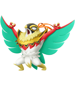 Mega Hawlucha retains its Fighting/Flying typing but features a more ornate design than Hawlucha.