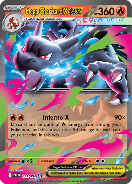 - Five special illustration rare Mega Evolution Pokémon ex and Supporter cards