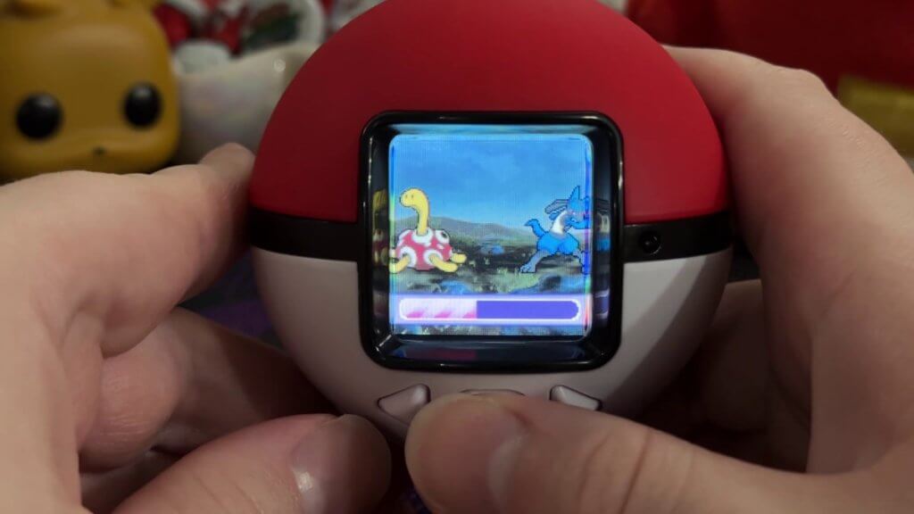 There’s also the opportunity to battle with your Pokémon! It’s a very simple game in which you rapidly press the center button to try to defeat your opponent. Traditional Pokémon stats and type effectiveness does not come into play.