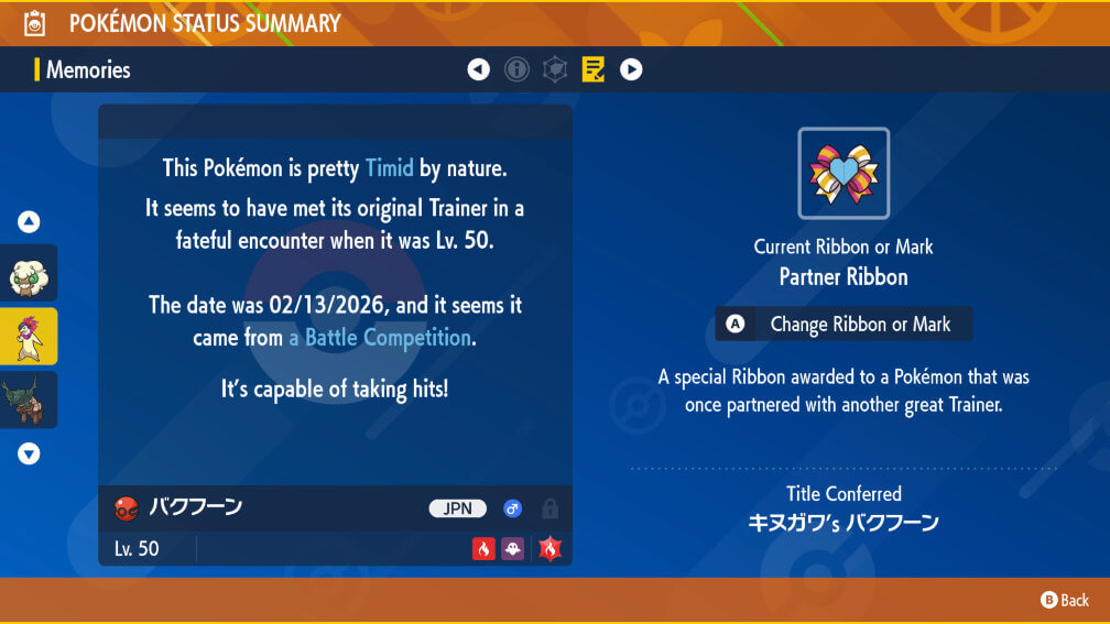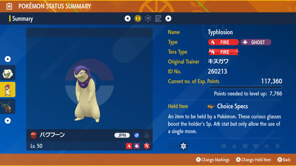 Below are details about the Typhlosion players receive. It has perfect IVs in Special Attack and Speed.