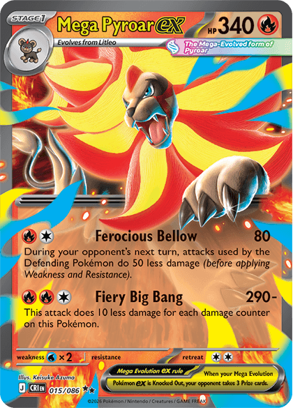 Booster packs for Chaos Rising feature Mega Dragalge ex, Mega Greninja ex, Mega Pyroar ex and Mega Floette.