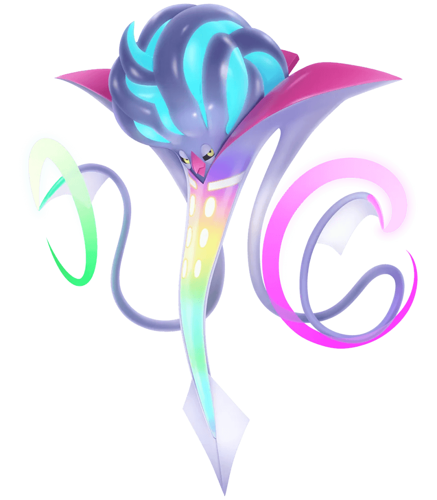 Mega Victreebel’s stomach is swollen with the overwhelming amount of acid it carries.